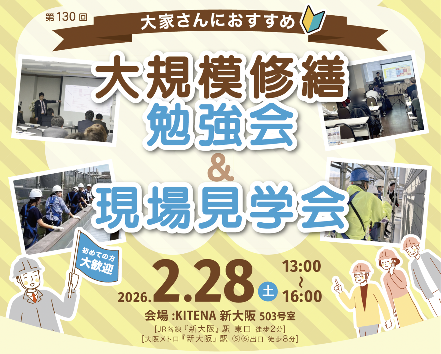 現場の実践的な現場知識はもちろんのこと、前半のセミナーパートでは大規模修繕の基本から手抜き工事をされないための応用知識までまるっと伝授いたします!
