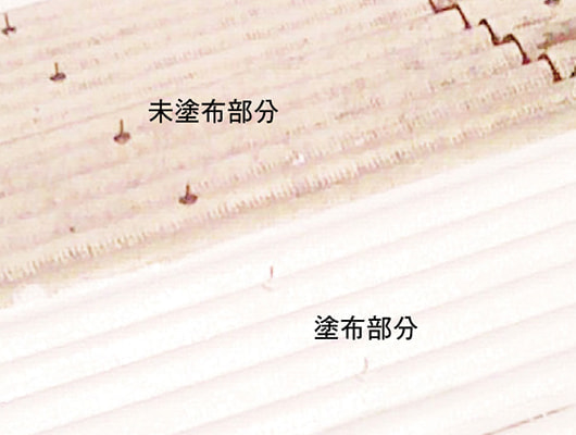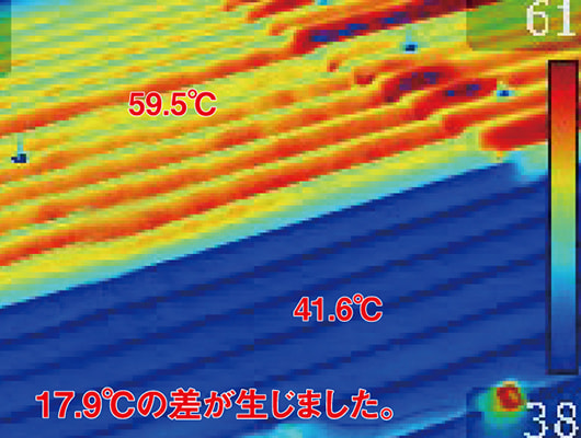 《遮熱比較実験》遮熱塗料を部分的に塗布し温度上昇の違いを比較しています。
