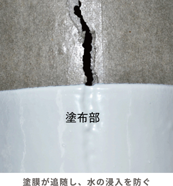 伸縮性の高い塗料を使って雨漏箇所を補修。
